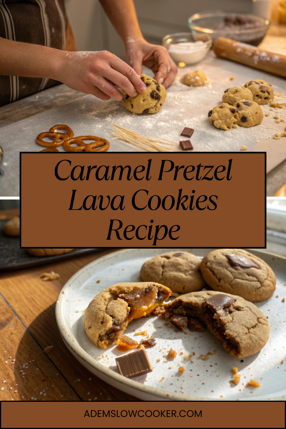 I made these cookies the first time after a total baking fail. I had tried a fancy layered dessert that completely collapsed, and I was left with leftover caramel and chocolate sitting on the counter. I threw them into a basic cookie dough with some crushed pretzels, hoping for the best. These turned out better than the original plan.